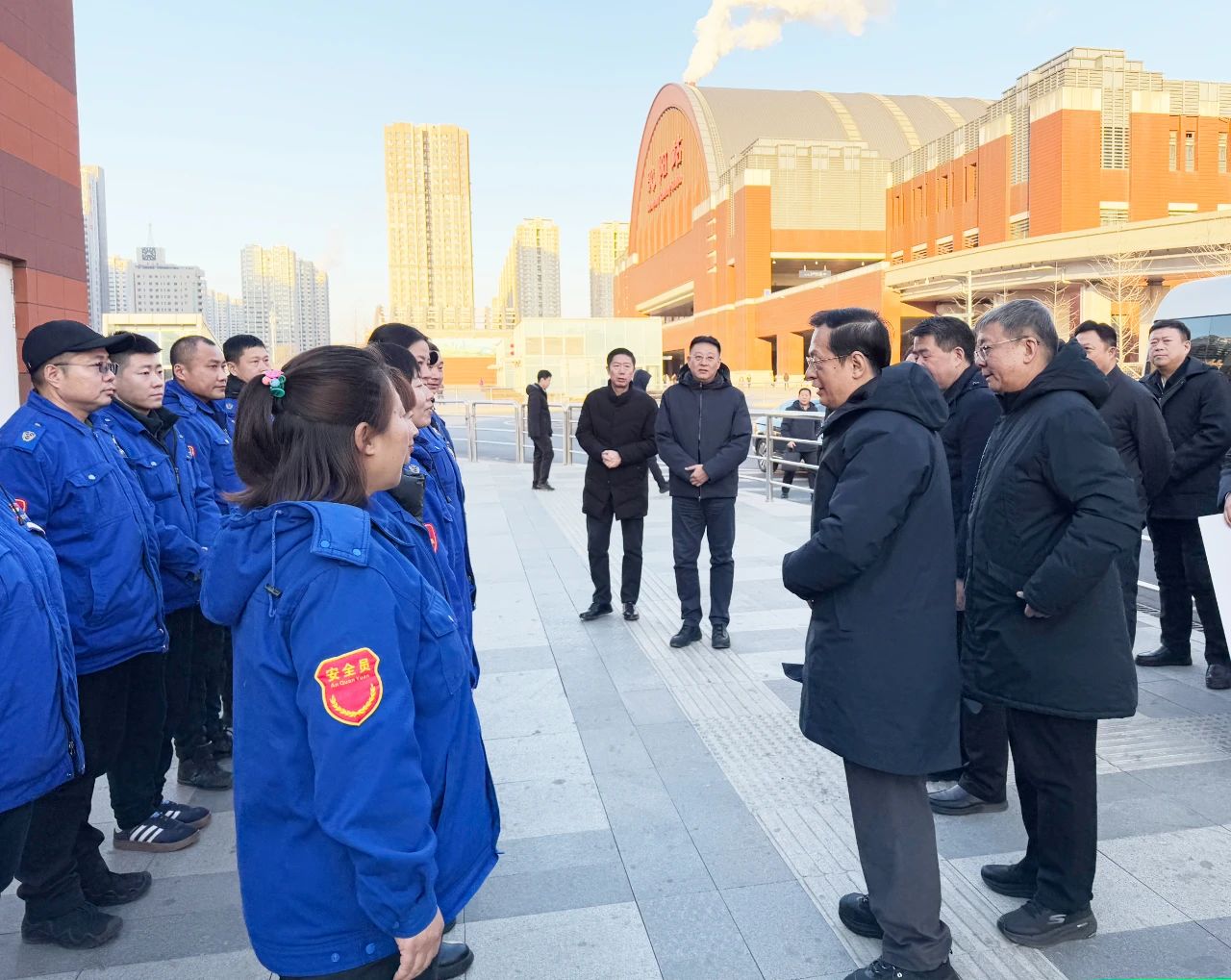1月7日,省人大常委會黨組副書記、副主任,省總工會黨組書記、主席陳綠平一行來到沈陽站西廣場公交樞紐站走訪慰問,送來黨和政府的關懷、工會組織的溫暖。