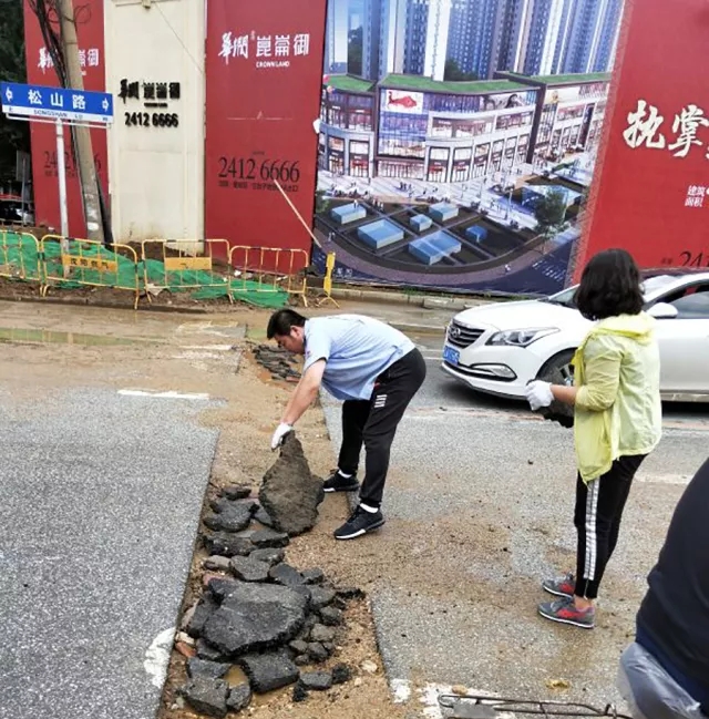 同樣路過此路段的黃河公司217路的駕駛員們也發(fā)現(xiàn)了這個(gè)問題。因?yàn)樾薪?jīng)此路段,路面原因造成的塞車不僅影響到正點(diǎn)行車,而且車輛顛簸也可能導(dǎo)致客傷事故的發(fā)生,對(duì)車輛底盤也會(huì)造成不同程度的損傷。針對(duì)這一問題,車隊(duì)管理人員與廣大駕駛員想法不謀而合,大家?guī)翔F鍬、麻袋,在周邊施工處尋找到能夠利用上的鋪路石頭,收集裝車運(yùn)到松山路,大家齊心協(xié)力把原本坑洼不平的馬路填補(bǔ)平坦。路過的司機(jī)和行人都紛紛豎起大拇指,稱贊道:“217路的員工個(gè)個(gè)都是好樣的,為你們點(diǎn)贊。”六月的天氣驕陽(yáng)似火,大家擦著額頭的汗水,聽著路人的稱贊,風(fēng)趣地調(diào)侃道:“路見不‘平’你往里哪走?我們217路該出手時(shí)就出手!”大家積極、陽(yáng)光、向上的精神面貌感染著身邊的每一個(gè)人。